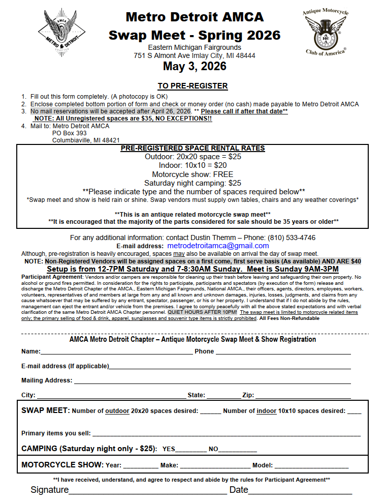 9th Annual Metro Detroit AMCA Antique Motorcycle Swap Meet