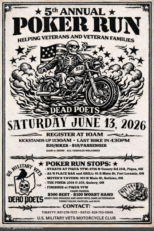 U.S. Military Vets MC – Dead Poets Poker Run